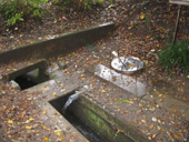 実はこの水場「土掘」「四ツ屋新」の地区のみなさんと地元住民組織「九区明るい家庭づくり協議会」と「五泉トゲソを守る会」さん達が整備管理している水場です。早く言えば他人の敷地みたいです?みたいな所です。絶対荒らしてはなりません!!! この水路も皆さんの力の印しなんです! |