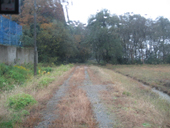 上の看板が目印!砂利の道を進んでいきます。この日は雨でした。 |