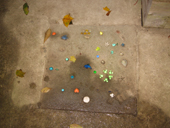 子供達が一生懸命作ったビー玉や貝殻で作ったモニュメントです。土足で踏めませんね! |